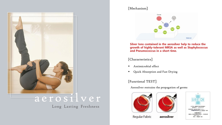 AEROSILVER Taiwan made deodorizing anti bacterial spandex knit fabric